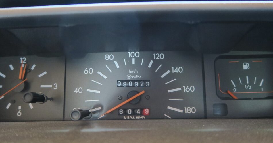 Käyttöönotto v. 1989. Ensimmäinen omistaja ajoi 3v ja 3000 km. Auto seisoi kylmässä tallissa jonkin aikaa, mutta otettiin uudestaan käyttöön. Ajettu vain 81000 km. Huoltokirja. Punainen, 3-ovinen. Autoa ei ole katsastettu 2025. Akku on tyhjä. Auto on melko ruosteeton, maalipinta vaatinee myllytyksen. Korissa on muutama painauma ja vilkun lasi säröillä. Kahdet renkaat.