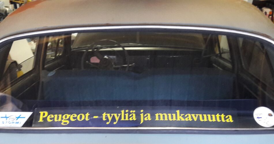 Olemme teettäneet entisaikojen tyylisen, kerholaisten autojen takaikkunaan kiinnitettävän tarran, jonka läpinäkyvän taustan koko on 6,5 x 63,5 cm. Tekstin korkeus on 3,5 cm.